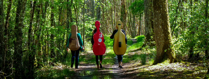 Ce trio féminin, dans un univers acoustique et intimiste, mêle avec harmonie et originalité, les cordes des violoncelles, de la guitare et de la voix. Les textes, composés tout le long du voyage musical, en langue française et dans un dialecte imaginaire, feront vibrer les petits comme les grands. Et pour 2024, le trio se modifie, en accueillant; Florence Adam à la contrebasse et à la voix.